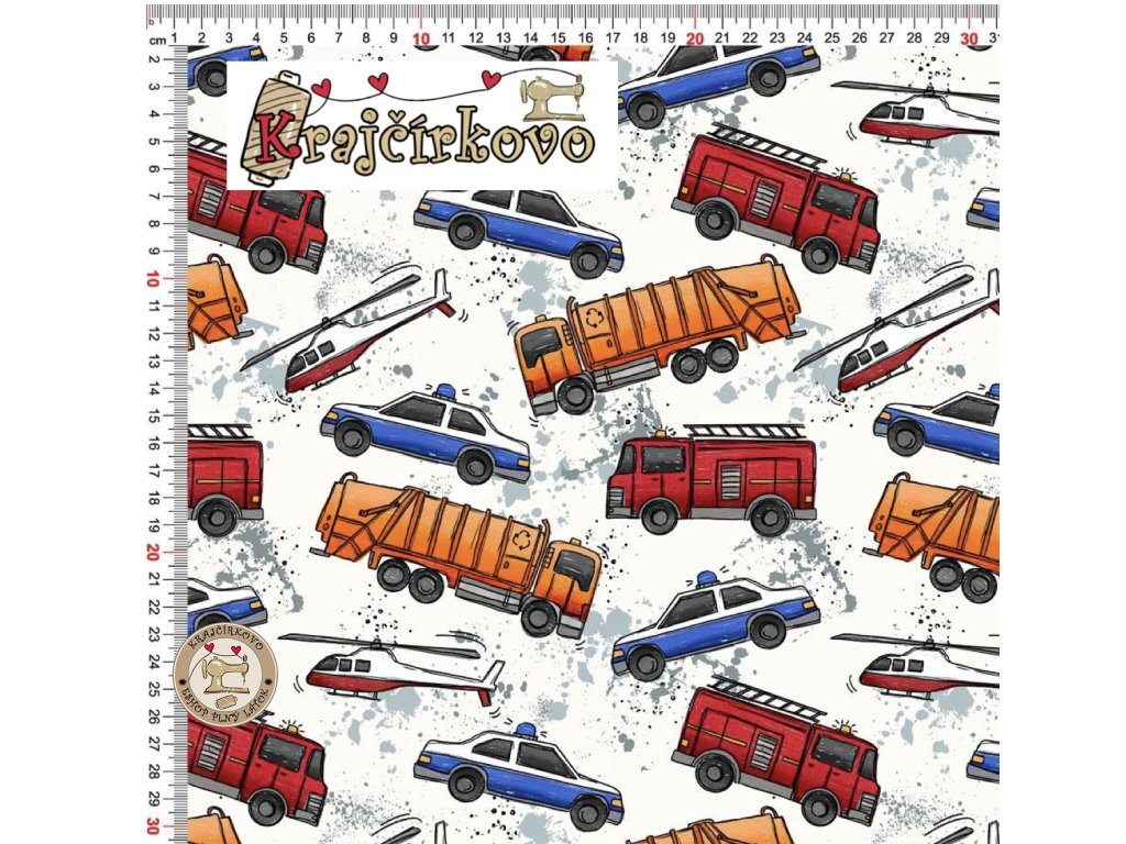 Motiv Městská vozidla v akci je dostupný výhradně u nás, takže máte jistotu skutečné originality. Autorský ručně kreslený styl dodává látce osobitý charakter a činí z ní skvělý základ pro kreativní handmade projekty.