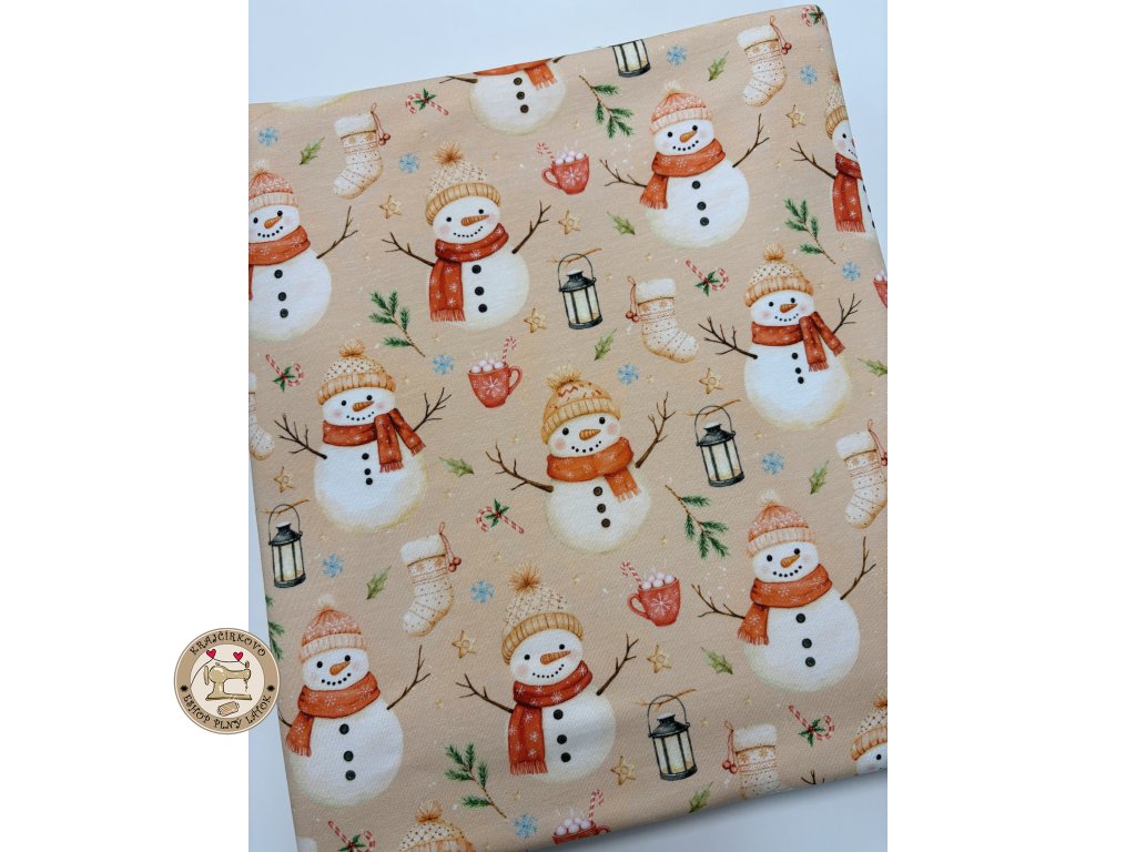 Teplákovina - Snehuliaci v zime je ideálnou voľbou pre všetkých, ktorí chcú do svojej handmade tvorby vniesť radosť, hravosť a zimnú atmosféru. Objednajte si ju ešte dnes v Krajčírkove a vytvorte originálne kúsky, ktoré zahrejú aj potešia.