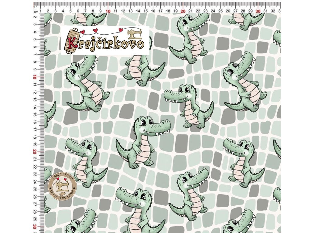 Veselá malá krokodýlka s milým úsměvem na žebrovaném úpletu přinese do každého kousku hravost a jemnou radost. Jemné zelené tóny na podkladě připomínajícím krokodýlí kůži...