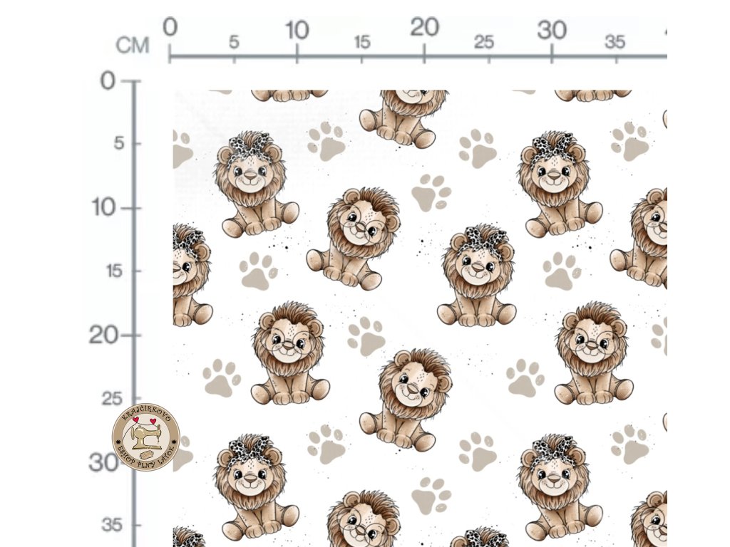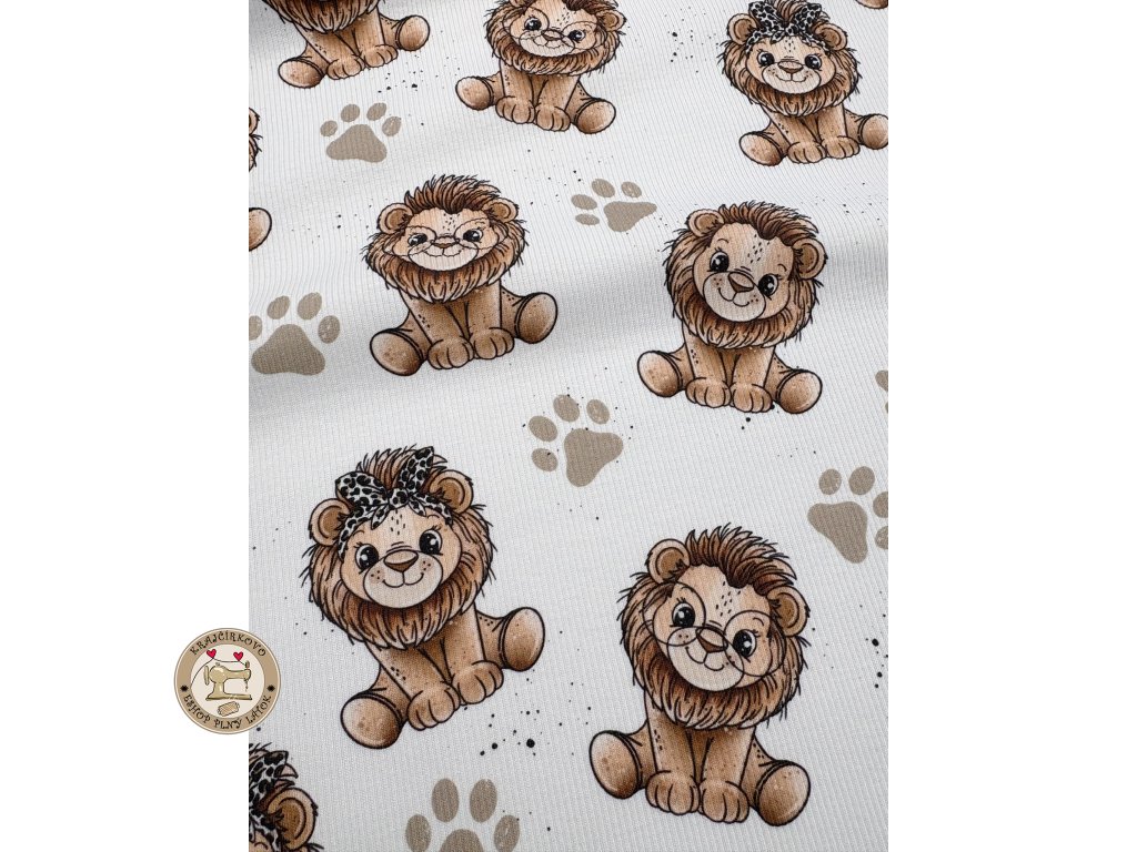 Látka Žebrovaný úplet - Lvíčata vnese do každého handmade kousku veselou energii a dětskou něhu. Ušijte si z ní originální oblečení plné radosti, které si vaše malé šelmy okamžitě zamilují.