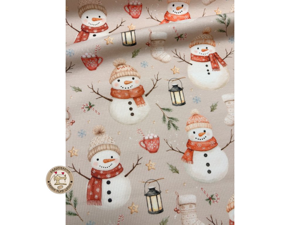 Žebraný úplet – Sněhuláci v zimě je látka, která spojuje kvalitu, originální design a funkčnost. Přeměň ji na kousky, které zahřejí a potěší v zimním období. Objednej si ji ještě dnes v Krejčírkově a vytvoř handmade oblečení plné radosti a zimní atmosféry!
