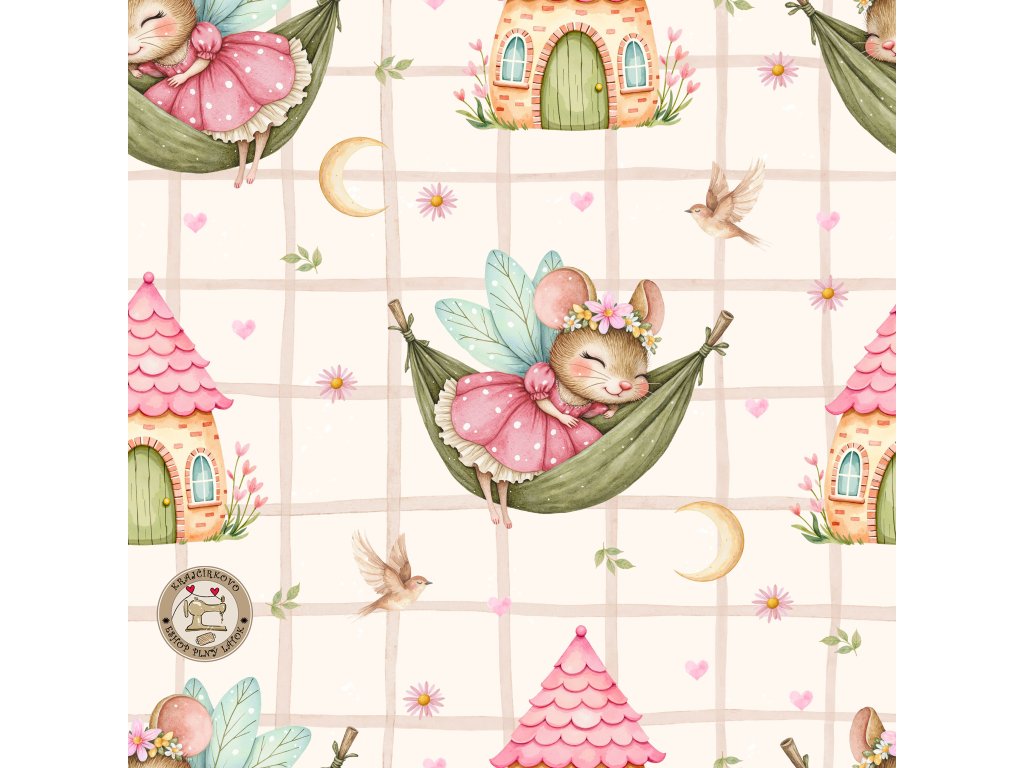 Žebrovaný úplet - Spící myška v houpačce