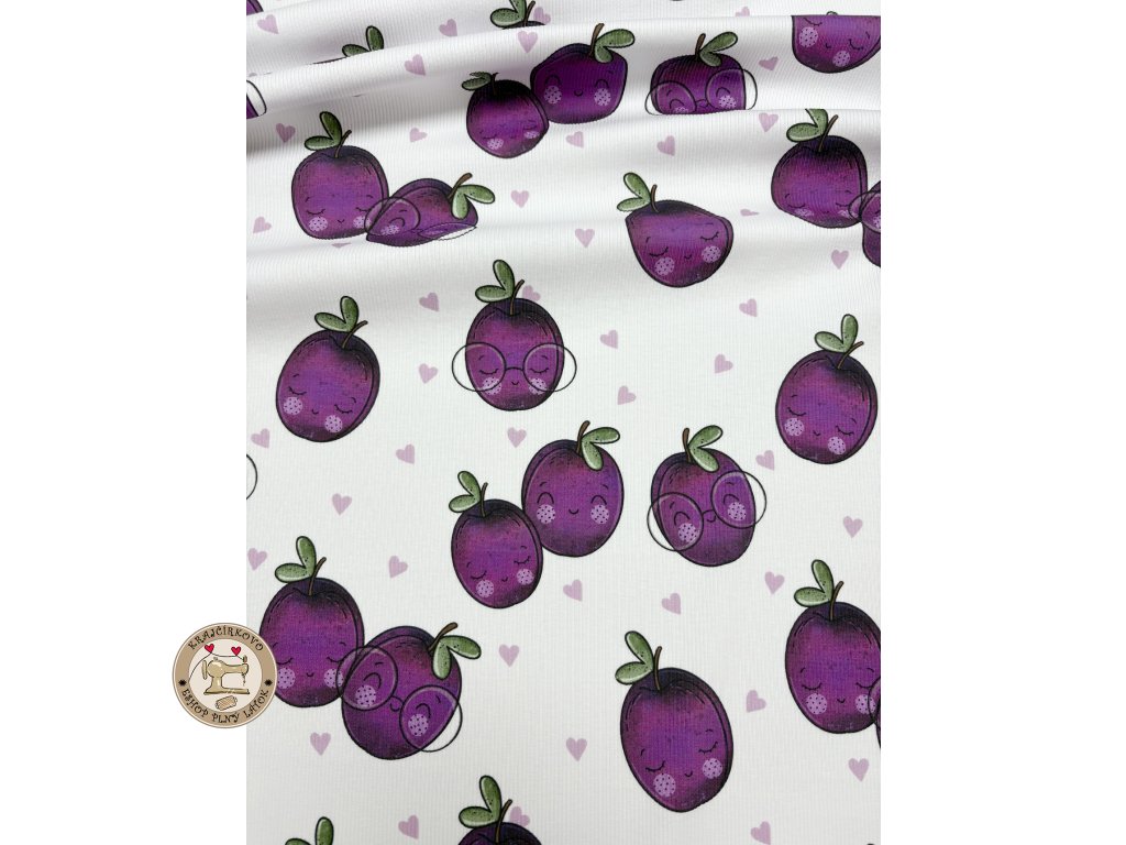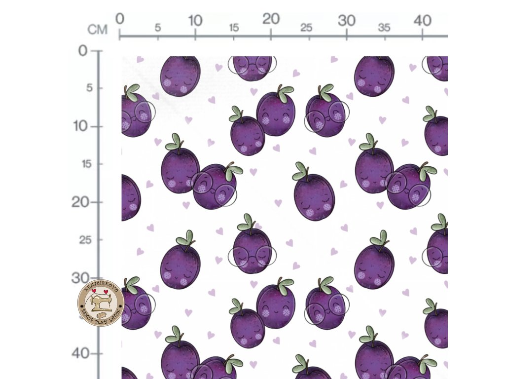 Vzorovaný hladký úplet - Jablíčka. Přinášíme Vám veselý a chutný design, pro malé milovníky ovoce. Ideální pro dětské oblečení. Ručně kreslený design. Jedinečný autorský vzor,...