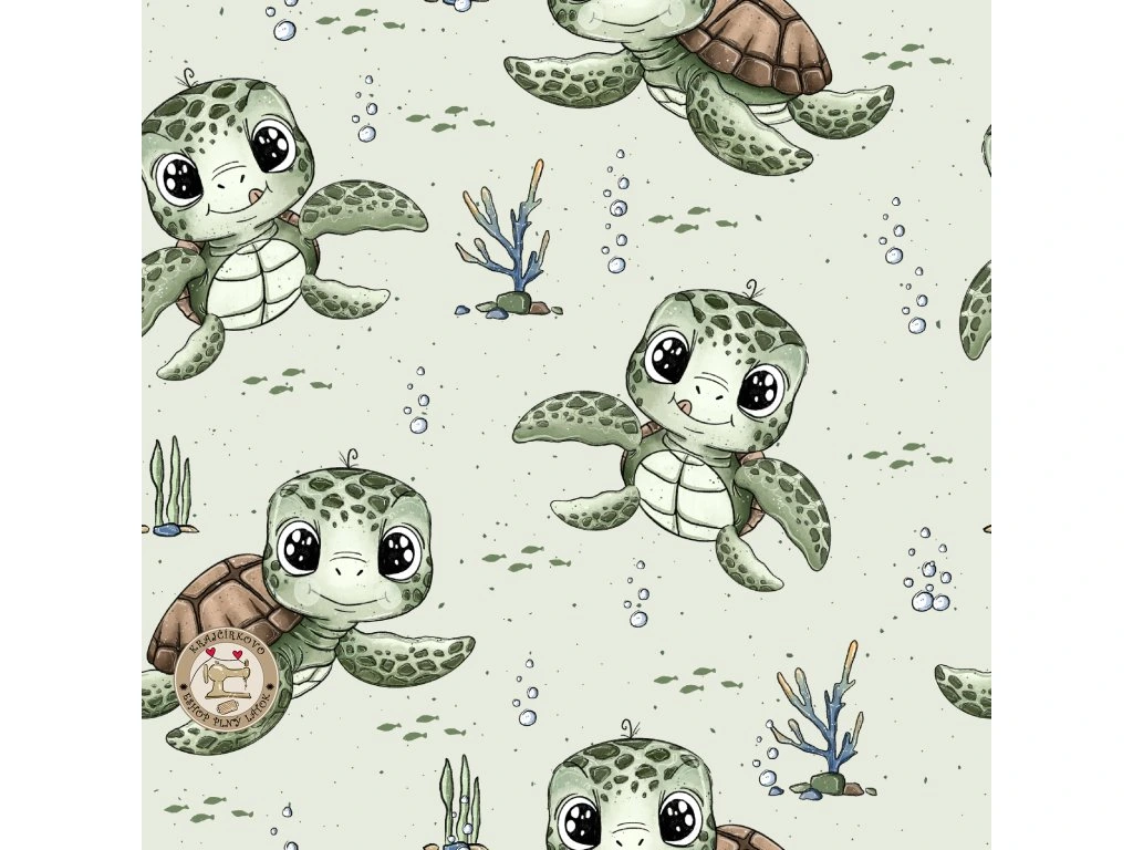 Jemná látka s milými želvami v podmořském světě působí klidně a harmonicky. Motiv je hravý, ale zároveň velmi příjemný na pohled – ideální pro dětské oblečení i doplňky. Jedná...
