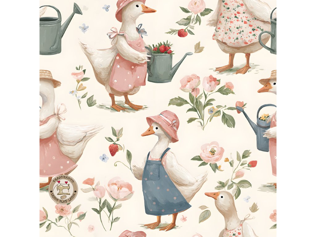 Hladký úplet - Husičky v záhrade