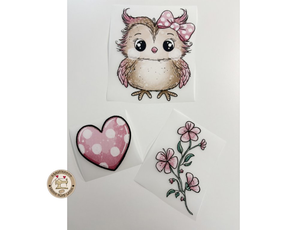 Vzorovaný hladký úplet so sovičkami s mašličkami si zamilujete na prvý pohľad. Vzor je originál ručne maľovaný, plný jemných detailov, kvietkov a srdiečok v romantických...