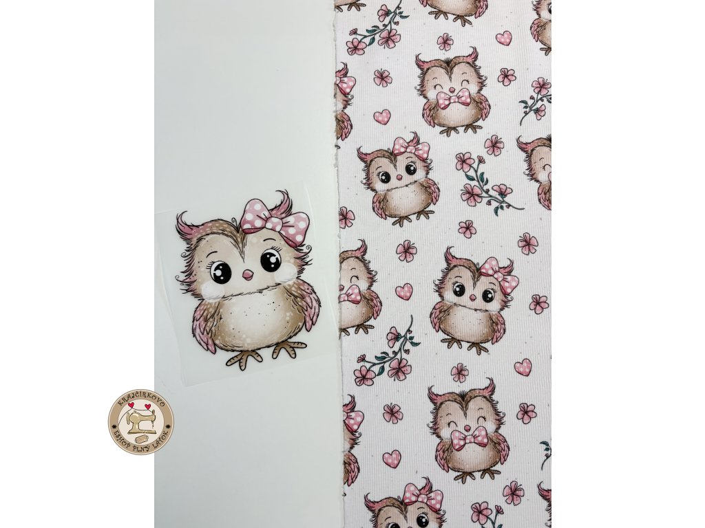 Vzorovaný hladký úplet so sovičkami s mašličkami si zamilujete na prvý pohľad. Vzor je originál ručne maľovaný, plný jemných detailov, kvietkov a srdiečok v romantických...