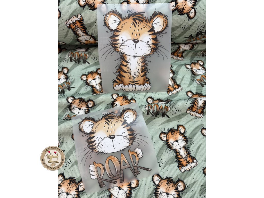 Malý tiger s nápisom ROAR na jemnom zelenom podklade. Hravý, ale nie krikľavý. Taký, ktorý si deti zamilujú - a dospelým nebude prekážať ani na mikine. Motív je krásny a vynikne...