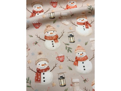 Dodaj svojim handmade kúskom zimnú hravosť a originálny dizajn! Rebrovaný úplet - Snehuliaci v zime je látka s jedinečným ručne maľovaným vzorom, ktorý nájdeš exkluzívne iba v...