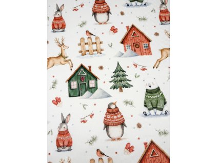 Vytvor si handmade kúsky s pravou sviatočnou atmosférou! Rebrovaný úplet - Medovníková dedinka je látka s rozprávkovým a detailne spracovaným vzorom medovníkových domčekov a...