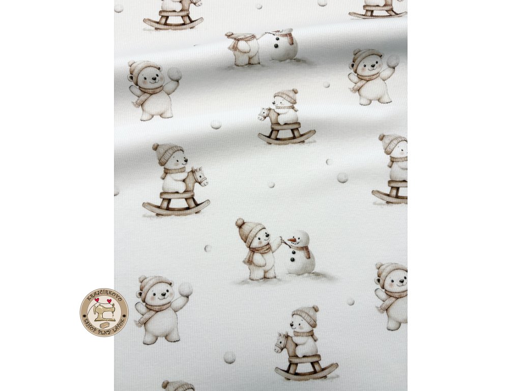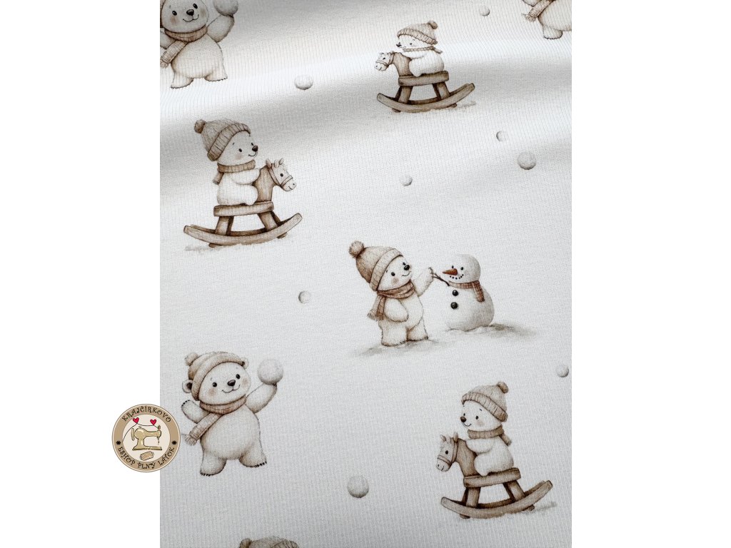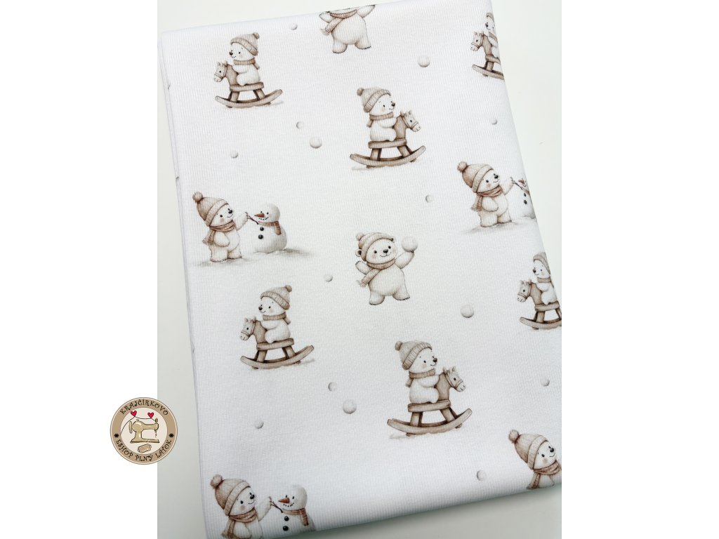 Rebrovaný úplet - Macko so snehuliakom a koníkom v snehu