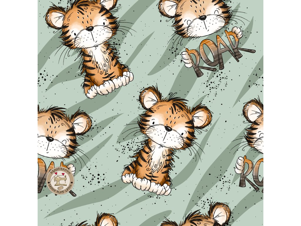 Malý tiger s nápisom ROAR na jemnom zelenom podklade. Hravý, ale nie krikľavý. Taký, ktorý si deti zamilujú - a dospelým nebude prekážať ani na mikine. Motív je krásny a vynikne...