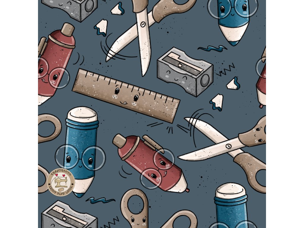 Ručne kreslený dizajn. Jedinečný autorský vzor, ktorý v tomto farebnom prevedení kúpite len u nás! Zloženie: 95% bavlna 5% elastan Šírka: cca. 105 cm...
