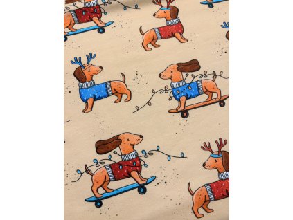 Veselá, hravá a originálna - taká je Teplákovina - Hoho Jazvečík, ktorá rozžiari vašu handmade tvorbu. Tento jedinečný autorský vzor zobrazuje roztomilé jazvečíky v zimných...