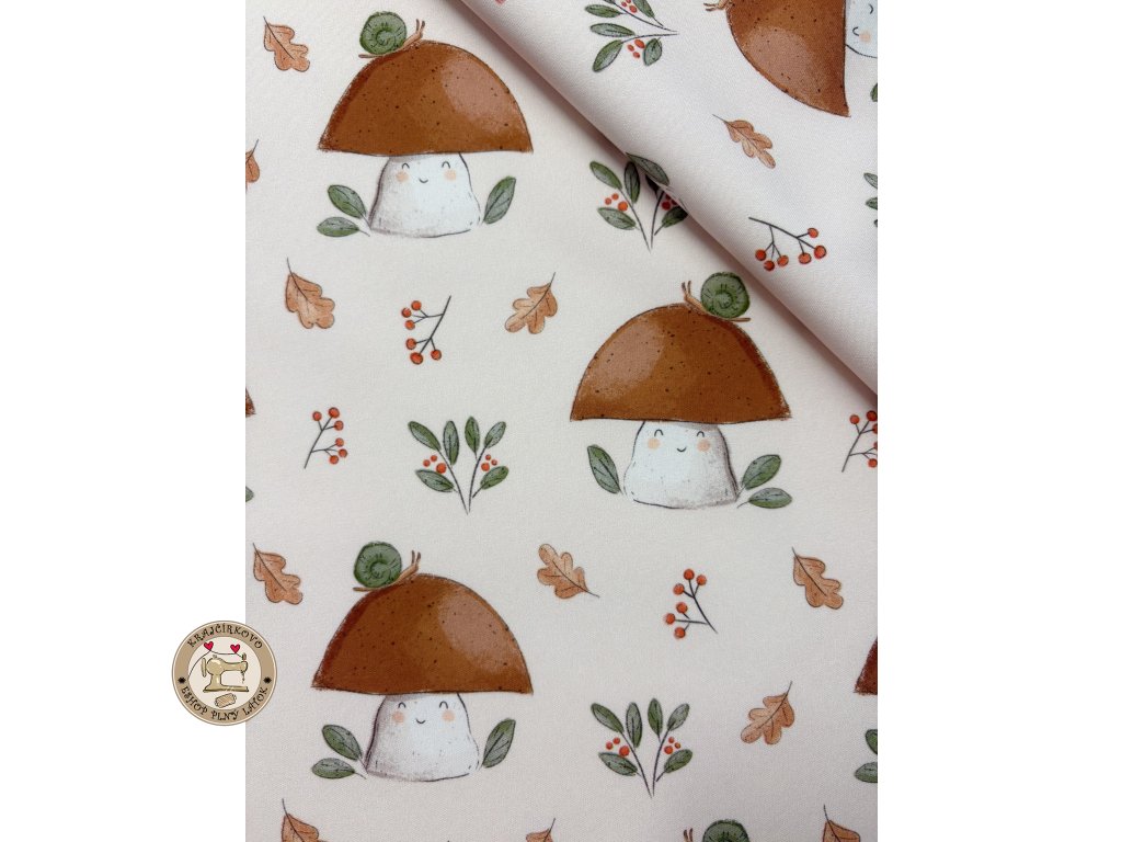 Nepočesaná teplákovina. Ručne kreslený dizajn. Jedinečný autorský vzor, ktorý v tomto farebnom prevedení kúpite len u nás! Zloženie: 95% bavlna 5% elastan Šírka: cca. 145...
